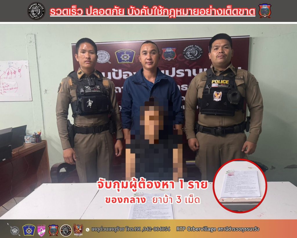 ได้ร่วมกันจับกุมผู้ต้องหาจำนวน 1 ราย 🚨🚨ของกลาง ยาบ้า 3 เม็ด🚨