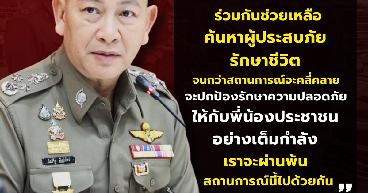 “ทุกวินาทีมีค่า ตำรวจจะทำงานอย่างต่อเนื่อง ร่วมกันช่วยเหลือค้นหาผู้ประสบภัย รักษาชีวิต จนกว่าสถานการณ์จะคลี่คลาย จะปกป้องรักษาความปลอดภัย ให้กับพี่น้องประชาชน อย่างเต็มกำลัง เราจะผ่านพ้น สถานการณ์นี้ไปด้วยกัน”