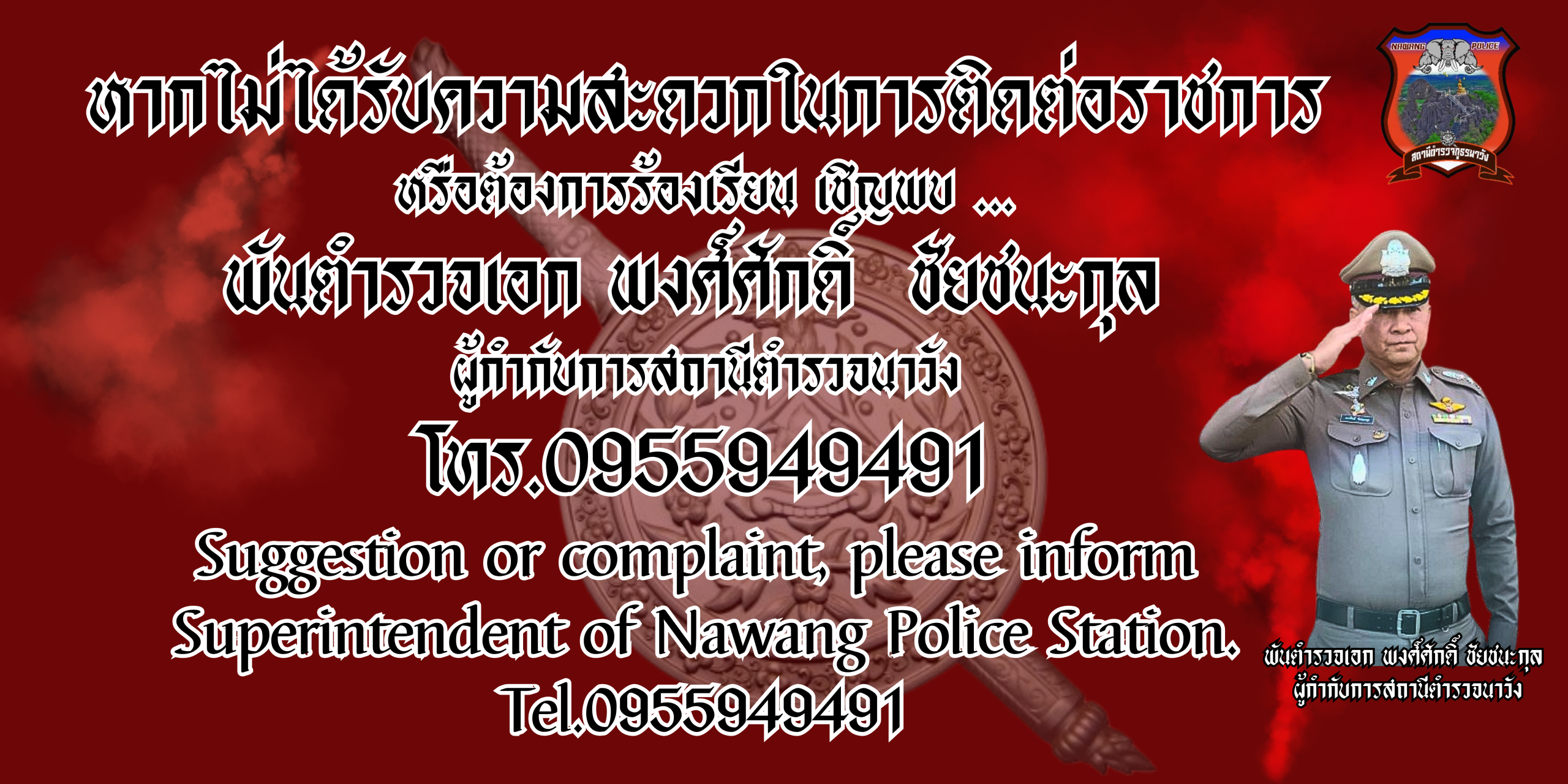 ช่องทางการแจ้งเรื่องร้องเรียน สถานีตำรวจภูธรนาวัง